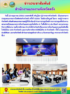 แรงงานจังหวัดตรังร่วมการประชุมคณะกรรมการโรคติดต่อจังหวัดตรัง ครั้งที่ 13/2564