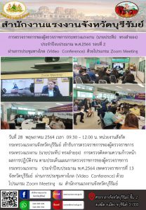 สำนักงานแรงงานจังหวัดบุรีรัมย์ เข้ารับการตรวจราชการของผู้ตรวจราชการกระทรวงแรงงาน (นายประทีป ทรงลำยอง) ประจำปีงบประมาณ พ.ศ.2564 รอบที่ 2 ผ่านการประชุมทางไกล (Video Conference) ด้วยโปรแกรม Zoom Meeting