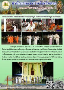 แรงงานจังหวัดตาก ร่วมพิธีเวียนเทียน ถวายเป็นพุทธบูชา เนื่องในเทศกาลวันวิสาขบูชา ประจำปี 2564