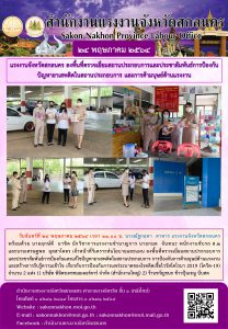 แรงงานจังหวัดสกลนคร ลงพื้นที่ตรวจเยี่ยมสถานประกอบการและประชาสัมพันธ์การป้องกันปัญหายาเสพติดในสถานประกอบการ และการค้ามนุษย์ด้านแรงงาน