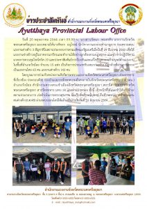 สำนักงานแรงงานจังหวัดพระนครศรีอยุธยา ร่วมตรวจสอบแรงงานต่างด้าว 3 สัญชาติในสถานประกอบการตามมติคณะรัฐมนตรีเมื่อวันที่ 29 ธันวาคม 2563