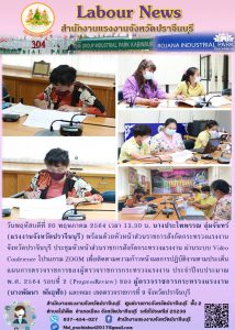 แรงงานจังหวัดปราจีนบุรี ประชุมหัวหน้าส่วนราชการสังกัดกระทรวงแรงงาน เพื่อติดตามความก้าวหน้าผลการปฏิบัติงานตามประเด็นแผนการตรวจราชการของผู้ตรวจราชการกระทรวงแรงงาน ประจำปีงบประมาณ พ.ศ. 2564 รอบที่ 2 (ProgressReview)