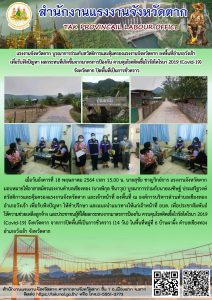 แรงงานจังหวัดตาก บูรณาการร่วมกับสวัสดิการและคุ้มครองแรงงานจังหวัดตาก ลงพื้นที่อำเภอวังเจ้า เพื่อรับฟังปัญหา ผลกระทบที่เกิดขึ้นจากมาตรการป้องกัน ควบคุมโรคติดเชื้อไวรัสโคโรนา 2019 (Covid-19) จังหวัดตาก ปิดพื้นที่เป็นการชั่วคราว