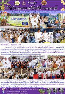 สำนักงานแรงงานจังหวัดกำแพงเพชร ร่วมพิธีทำบุญตักบาตรโครงการจัดกิจกรรมส่งเสริมพระพุทธศาสนา เนื่องในเทศกาลวันวิสาขบูชา 2568