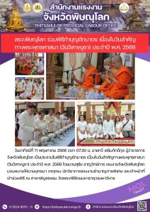 สรจ.พิษณุโลก ร่วมพิธีทำบุญตักบาตร เนื่องในวันสำคัญทางพระพุทธศาสนา (วันวิสาขบูชา) ประจำปี พ.ศ. 2568
