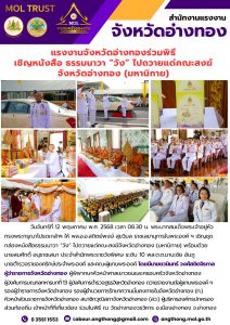 แรงงานจังหวัดอ่างทองร่วมพิธี เชิญหนังสือ ธรรมนาวา “วัง” ไปถวายแด่คณะสงฆ์จังหวัดอ่างทอง (มหานิกาย)
