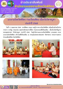 แรงงานจังหวัดพิจิตร ร่วมเวียนเทียน เนื่องวันวิสาขบูชา ประจำปี 2568