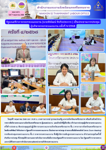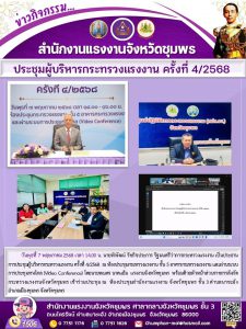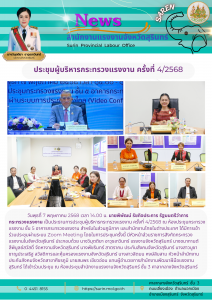 วันที่ 7 พฤษภาคม 2568 เวลา 14.00 น. นางสาวนราภรณ์ สุวรรณประเสริฐ แรงงานจังหวัดนครศรีธรรมราช พร้อมด้วยหัวหน้าส่วนราชการสังกัดกระทรวงแรงงาน ผู้แทนหน่วยงาน และเจ้าหน้าที่ผู้เกี่ยวข้อง เข้าร่วมการประชุมผู้บริหารกระทรวงแรงงาน ครั้งที่ 4/2568 ผ่านระบบสื่ออิเล็กทรอนิกส์ (ระบบ Zoom Meeting)
