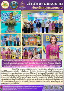 แรงงานจังหวัดสมุทรสงคราม ร่วมพิธีเปิดงานแสดงและจำหน่ายสินค้า /เจรจาจับคู่ธุรกิจ กิจกรรมยกระดับและเชื่อมโยงตลาด BCG อัตลักษณ์พื้นถิ่น และ Soft Power เพชรสมุทรคีรี ภายใต้ “เพชรสมุทรคีรี Local BCG 2025”