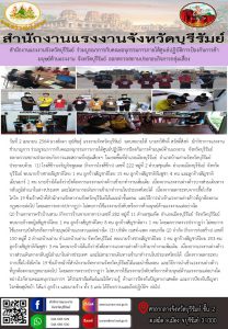 สำนักงานแรงงานจังหวัดบุรีรัมย์ ร่วมบูรณาการกับคณะอนุกรรมการภายใต้ศูนย์ปฏิบัติการป้องกันการค้ามนุษย์ด้านแรงงาน จังหวัดบุรีรัมย์ ออกตรวจสถานประกอบกิจการกลุ่มเสี่ยง