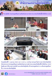 จังหวัดลพบุรี ประชุมเตรียมความพร้อมการประชุมหัวหน้าส่วนราชการสังกัดกระทรวงแรงงาน เพื่อติดตามความก้าวหน้าผลการปฏิบัติงานตามประเด็นแผนการตรวจราชการของผู้ตรวจราชการกระทรวงแรงงาน ประจำปีงบประมาณ พ.ศ.2564