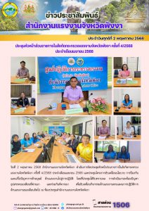 สรจ.พังงา ร่วมประชุมหัวหน้าส่วนราชการในสังกัดกระทรวงแรงงานจังหวัดพังงา ครั้งที่ 4/2568 ประจำเดือนเมษายน 2568