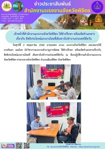 เจ้าหน้าที่สำนักงานแรงงานจังหวัดพิจิตร ให้คำปรึกษา พร้อมจัดทำเอกสาร เกี่ยวกับ สิทธิประโยชน์แรงงานไทยที่เดินทางไปทำงานประเทศไต้หวัน