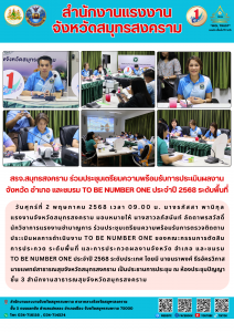 สรจ.สมุทรสงคราม ร่วมประชุมเตรียมความพร้อมรับการประเมินผลงาน จังหวัด อำเภอ และชมรม TO BE NUMBER ONE ประจำปี 2568 ระดับพื้นที่