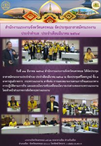 สำนักงานแรงงานจังหวัดนครพนม ได้จัดประชุมอาสาสมัครแรงงานประจำตำบล ประจำเดือนมีนาคม 2564 ณ ห้องประชุมศรีโคตรบูรณ์ ชั้น 3 อาคารศูนย์ราชการ กระทรวงแรงงาน อาทิเช่น การมอบหมายงานตามภารกิจและแนวทางการปฏิบัติตามภารกิจ