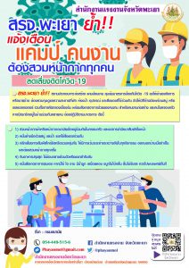 สรจ.พะเยา ย้ำ แจ้งเตือน แคมป์ คนงาน ต้องสวมหน้ากากทุกคน ลดเสี่ยงติดโควิด-19