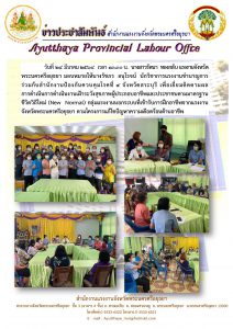 สำนักงานแรงงานจังหวัดพระนครศรีอยุธยา ร่วมกับสำนักงานป้องกันควบคุมโรคที่ 4 จังหวัดสระบุรี เพื่อเยี่ยมติดตามผล การดำเนินการดำเนินงานเฝ้าระวังสุขภาพผู้ประกอบอาชีพและประชาชนตามมาตรฐานชีวิตวิถีใหม่ (New Normal) กลุ่มแรงงานนอกระบบ