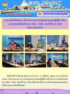 แรงงานจังหวัดสงขลา เป็นประธานการประชุมทบทวนแผนปฏิบัติการด้านแรงงานระดับจังหวัด พ.ศ. 2563 – 2565 ประจำปี พ.ศ. 2564 (วิเคราะห์ SWOT)