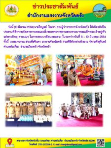 แรงงานจังหวัดตรังร่วมพิธีถวายภัตตาหารเพลและสิ่งของพระราชทานของพระบาทสมเด็จพระเจ้าอยู่หัวแด่พระภิกษุ สามเณร ในการสอบบาลีสนามหลวง ใ
