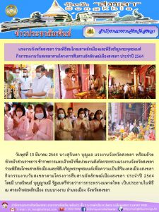 แรงงานจังหวัดสงขลา ร่วมพิธีสมโภชเสาหลักเมืองและพิธีเจริญพระพุทธมนต์ กิจกรรมงานวันสงขลาตามโครงการสืบสานอัตลักษณ์เมืองสงขลา ประจำปี 2564