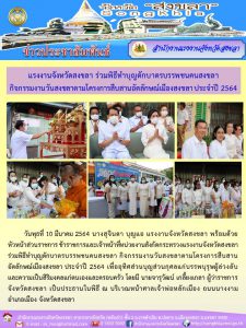 แรงงานจังหวัดสงขลา ร่วมพิธีทำบุญตักบาตรบรรพชนคนสงขลา กิจกรรมงานวันสงขลาตามโครงการสืบสานอัตลักษณ์เมืองสงขลา ประจำปี 2564