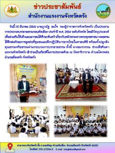 แรงงานจังหวัดตรังร่วมเป็นเกียรติการประกวดบรรยายธรรมรอบคัดเลือก ประจำปี พ.ศ. 2564 ระดับจังหวัด