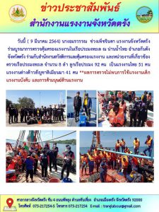 แรงงานจังหวัดตรังร่วมตรวจบูรณาการคุ้มครองแรงงานในเรือประมง ณ น่านน้ำไทย อำเภอกันตัง จังหวัดตรัง