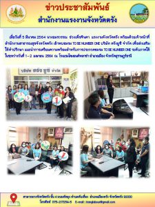 แรงงานจังหวัดตรังลงพื้นที่ส่งเสริมให้คำปรึกษา แนะนำการเตรียมความพร้อมสำหรับการประกวดชมรม TO BE NUMBER ONE ระดับภาคใต้ ณ บริษัท ตรังยูซี จำกัด