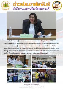 นางสาวบุปผา เรืองสุด ผู้ตรวจราชการกระทรวงแรงงาน พร้อมคณะเดินทางมาตรวจราชการจังหวัดสุพรรณบุรี