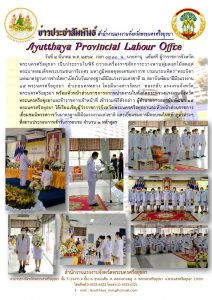 แรงงานจังหวัดพระนครศรีอยุธยา ร่วมพิธีถวายเครื่องราชสักการะวางพานพุ่มดอกไม้สดแด่พระบาทสมเด็จพระบรมชนกาธิเบศร มหาภูมิพลอดุลยเดชมหาราช บรมนาถบพิตร“พระบิดา แห่งมาตรฐานการช่างไทย”เนื่องในวันมาตรฐานฝีมือแรงงานแห่งชาติ