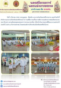 แรงงานจังหวัดนครศรีธรรมราช ร่วมพิธีถวายเครื่องราชสักการะแด่พระบาทสมเด็จพระบรมชนกาธิเบศรมหาภูมิพลอดุลยเดชมหาราชบรมนาถบพิตร เนื่องในวันมาตรฐานฝีมือเเรงงานเเห่งชาติ ประจำปี 2564