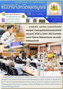 แรงงานจังหวัดเพชรบูรณ์ ร่วมประชุมหัวหน้าส่วนราชการจังหวัดเพชรบูรณ์ ครั้งที่ 2/2564 เพื่อร่วมหารือข้อราชการ รับทราบ ติดตามนโยบาย และภารกิจสำคัญของจังหวัด