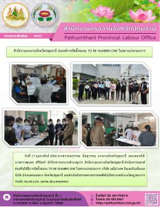 สำนักงานแรงงานจังหวัดปทุมธานี รณรงค์การจัดตั้งชมรม TO BE NUMBER ONE ในสถานประกอบการ