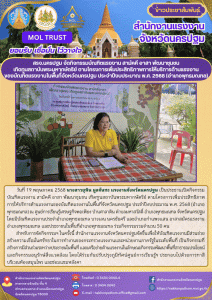 สรจ.นครปฐม จัดกิจกรรมบัณฑิตแรงงาน สามัคคี อาสา พัฒนาชุมชน เทิดทูนสถาบันพระมหากษัตริย์ ตามโครงการเพิ่มประสิทธิภาพการให้บริการด้านแรงงานของบัณฑิตแรงงานในพื้นที่จังหวัดนครปฐม ประจำปีงบประมาณ พ.ศ. 2568 (อำเภอพุทธมณฑล)