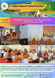 เข้าวัดปฏิบัติธรรมวันธรรมสวนะ “ศรัทธาอิ่มบุญ อุดหนุนชุมชน” ประจำปีงบประมาณ พ.ศ. 2568