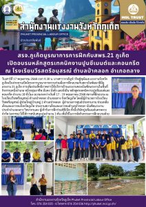 สรจ.ภูเก็ตบูรณาการการฝึกกับสพร.21 ภูเก็ต เปิดอบรมหลักสูตรเทคนิคงานปูนซีเมนต์และคอนกรีต ณ โรงเรียนวีรสตรีอนุสรณ์ ตำบลป่าคลอก อำเภอถลาง