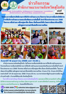 เปิดโครงการเพิ่มประสิทธิภาพการให้บริการด้านแรงงาน กิจกรรม โครงการเพิ่มประสิทธิภาพการให้บริการด้านแรงงานของบัณฑิตแรงงานในพื้นที่ ประจำปีงบประมาณ พ.ศ. 2568 กิจกรรม หนึ่งอำเภอ หนึ่งกลุ่มอาชีพ มั่นคง มั่นคั่งและยั่งยืน โดยการพัฒนาทักษะฝีมือ หลักสูตรการสานฝาซีแฟนซีจากหวายเทียม