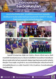 แรงงานจังหวัดพิษณุโลก ร่วมพิธีเปิดอบรมโครงการส่งเสริมและพัฒนาการบริหารจัดการด้านความปลอดภัย (Safety Dojo) ในสถานประกอบกิจการจังหวัดพิษณุโลก