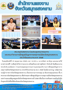 5 เสือแรงงาน ร่วมกับหน่วยงานที่เกี่ยวข้อง ออกตรวจบูรณาการตามแผนปฏิบัติการป้องกันการบังคับใช้แรงงานหรือบริการ และการค้ามนุษย์ด้านแรงงาน จังหวัดสมุทรสงคราม