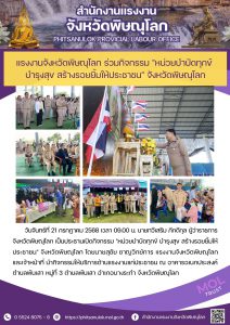 แรงงานจังหวัดพิษณุโลก ร่วมกิจกรรม “หน่วยบำบัดทุกข์ บำรุงสุข สร้างรอยยิ้มให้ประชาชน” จังหวัดพิษณุโลก