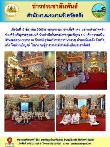 แรงงานจังหวัดตรังร่วมพิธีเจริญพระพุทธมนต์น้อมรำลึกในพระมหากรุณาธิคุณ ร.9 ณ วัดกะพังสุรินทร์