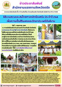 แรงงานจังหวัดตรัง ร่วมพิธีบวงสรวงและสมโภชศาลหลักเมืองตรัง ประจำปี 2568