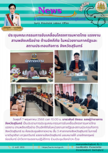 แรงงานจังหวัดสุรินทร์ ประชุมคณะกรรมการขับเคลื่อนโครงการมหาดไทย แรงงาน สานพลังเครือข่าย ต้านอัคคีภัย ในหน่วยงานภาครัฐและสถานประกอบกิจการ จังหวัดสุรินทร์