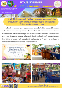 เจ้าหน้าที่สำนักงานแรงงานจังหวัดพิจิตร ร่วมถวายภัตตาหารเพลและนำปานะสำหรับสามเณร ตามโครงการเสริมสร้างคุณธรรมจริยธรรม ค่านิยมและความเป็นไทย ประจำปีงบระมาณ พ.ศ. 2568