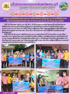 สำนักงานแรงงานจังหวัดสระบุรีร่วมกับหน่วยงานสังกัดกระทรวงแรงงานจังหวัดสระบุรี บูรณาการร่วมจัดกิจกรรมเนื่องในวันคล้ายวันสถาปนากระทรวงแรงงาน 23 กันยายน 2563 โดยการเยี่ยมและให้ความช่วยเหลือผู้ประกันตนที่ประสบอันตรายและทุพลภาพ ตามมาตรา 33 มาตรา 39 และมาตรา 40