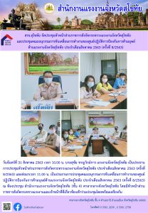 สรจ.สุโขทัย จัดประชุมหัวหน้าส่วนราชการสังกัดกระทรวงแรงงานจังหวัดสุโขทัย และประชุมคณะอนุกรรมการขับเคลื่อนการทำงานของศูนย์ปฏิบัติการป้องกันการค้ามนุษย์ด้านแรงงานจังหวัดสุโขทัย ประจำเดือนสิงหาคม 2563 (ครั้งที่ 8/2563)