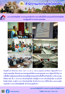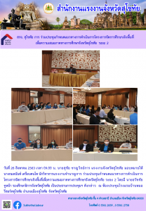 แรงงานจังหวัดสุโขทัย ร่วมประชุมและต้อนรับการตรวจเยี่ยมพื้นที่ประสบอุทกภัยในจังหวัดสุโขทัยของรัฐมนตรีว่าการกระทรวงมหาดไทย