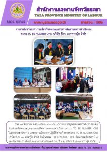 แรงงานจังหวัดยะลา ร่วมต้อนรับคณะอนุกรรมการติดตามผลการดำเนินงาน ชมรม TO BE NUMBER ONE บริษัท พี.เจ. 37 พาราวู้ด จำกัด