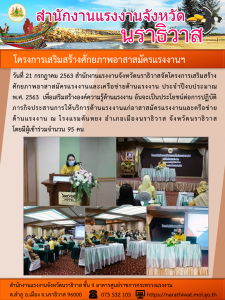 สำนักงานแรงงานจังหวัดนราธิวาส จัดโครงการเสริมสร้างศักยภาพอาสาสมัครแรงงานและเครือข่ายด้านแรงงาน ประจำปีงบประมาณ พ.ศ. 2563