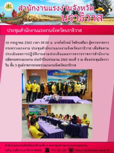 ผู้ตรวจราชการกระทรวงแรงงาน ประชุมติดตามการปฏิบัติงานของสำนักงานแรงงานจังหวัดนราธิวาส